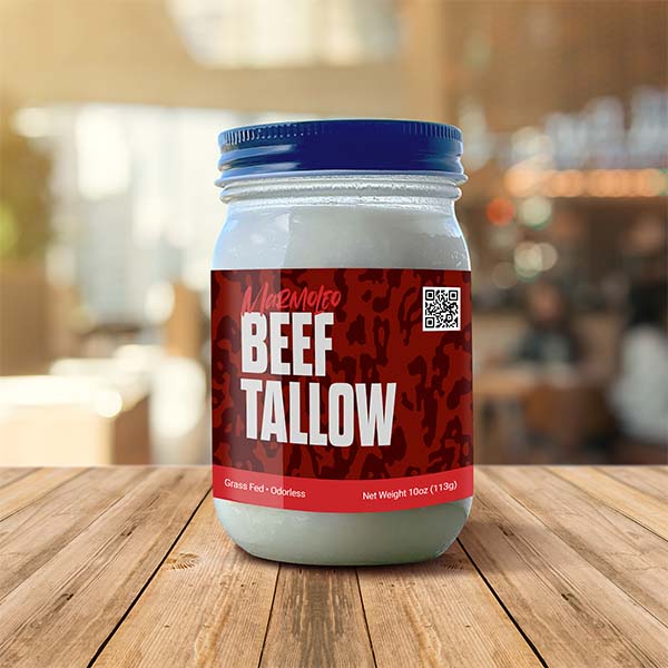 Nuestro sebo de res premium se derrite a la perfección, se purifica cuidadosamente para eliminar impurezas y se envasa en un frasco de cristal de 10 oz para garantizar la máxima frescura.